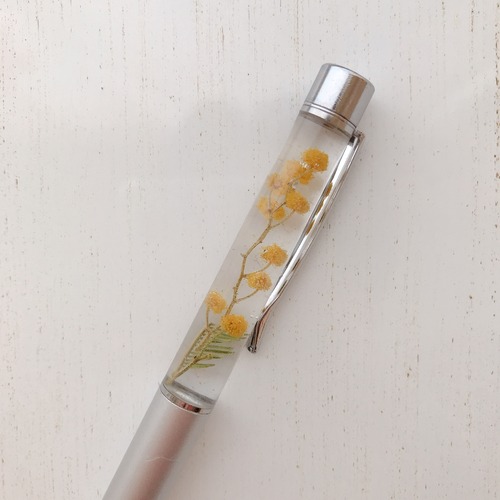 ハーバリウムペン シルバー ミモザ