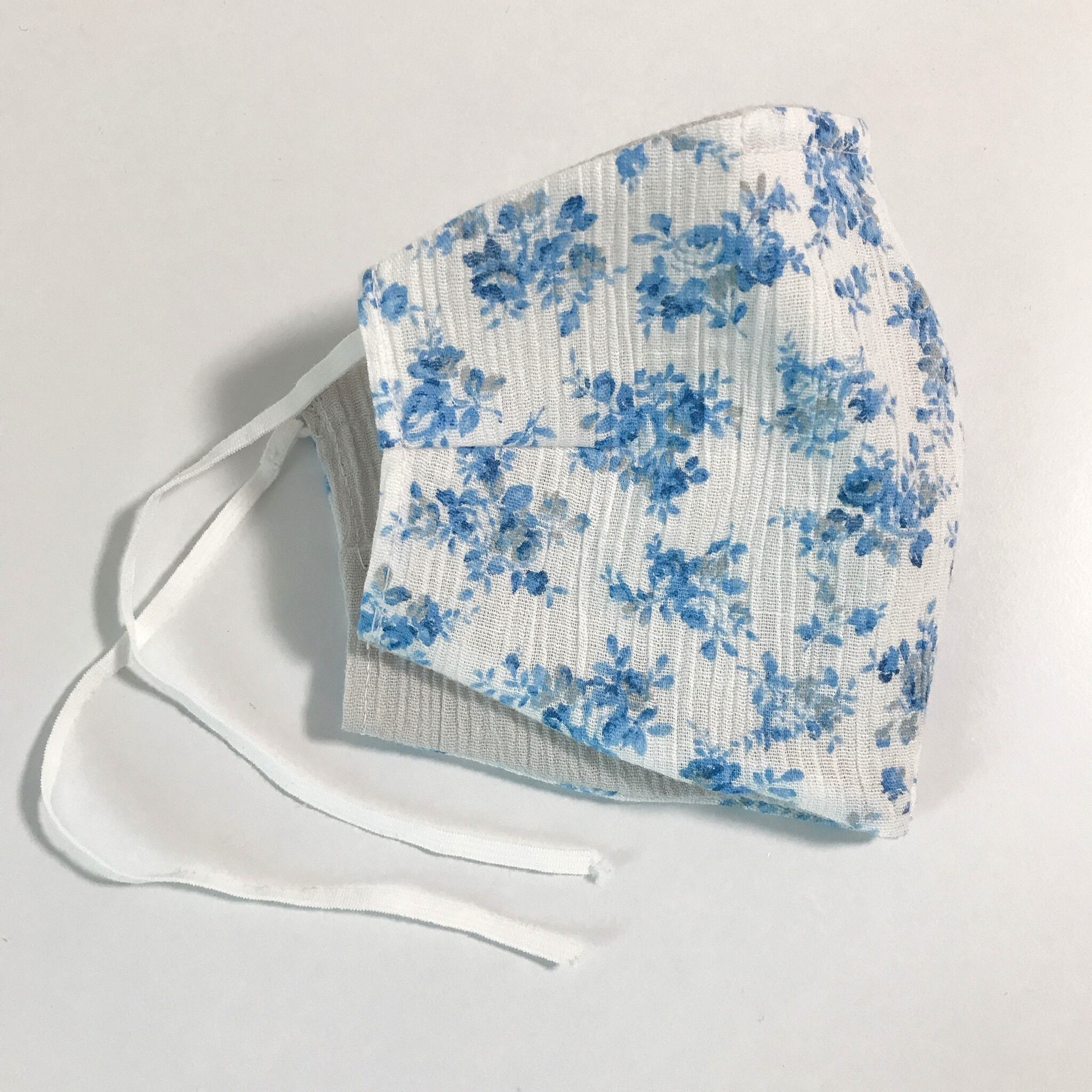 夏用マスク【送料無料】快適立体タイプ 花柄ブルー 耳元からアゴまですっぽり隠れるので紫外線対策にも★
