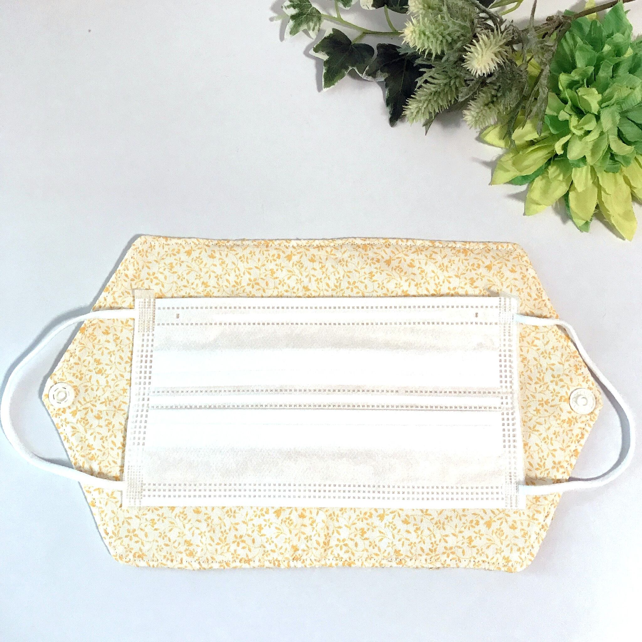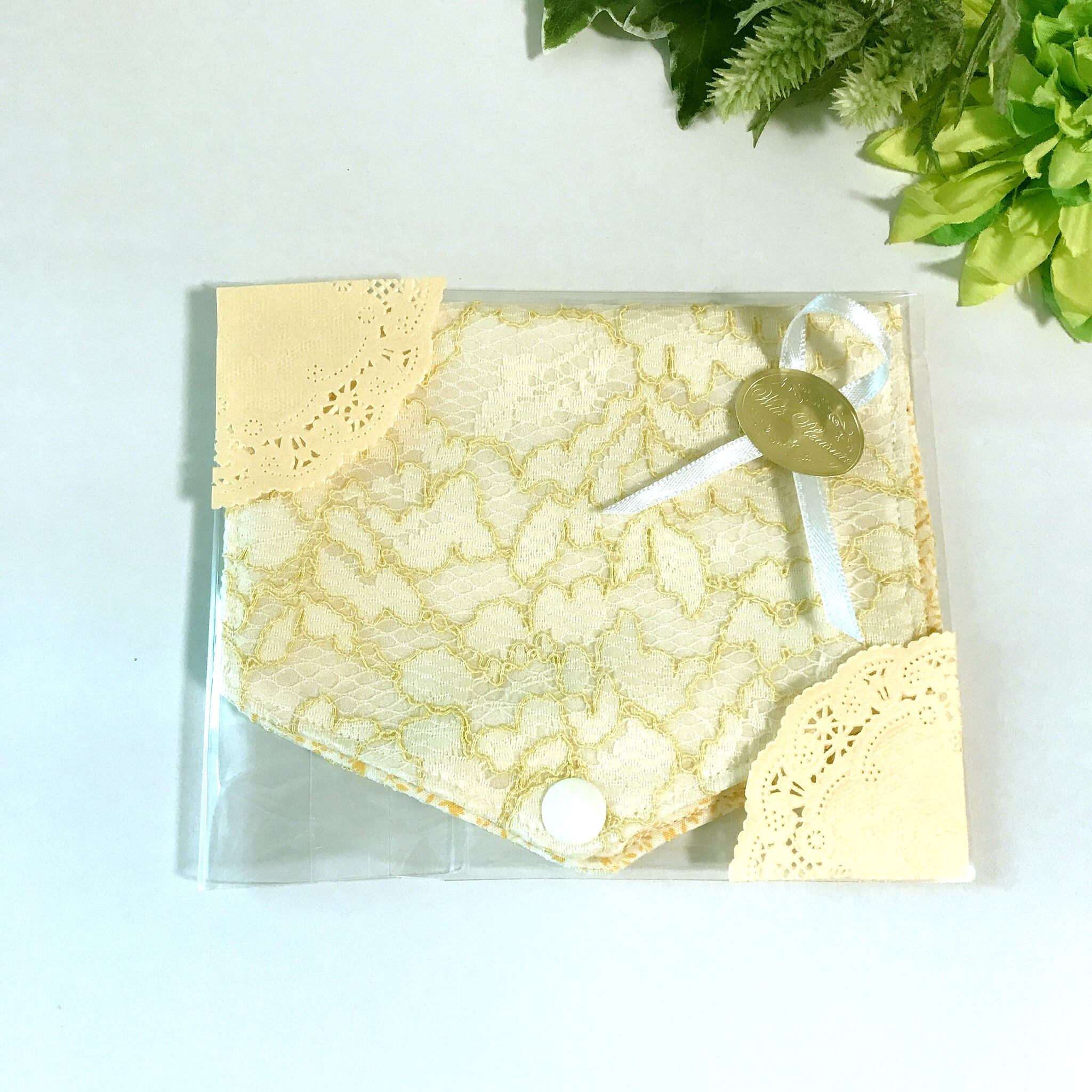 【送料無料】大きめ マスクケース マスクポーチ マスク仮置きケース 花柄レース イエローグリーン
