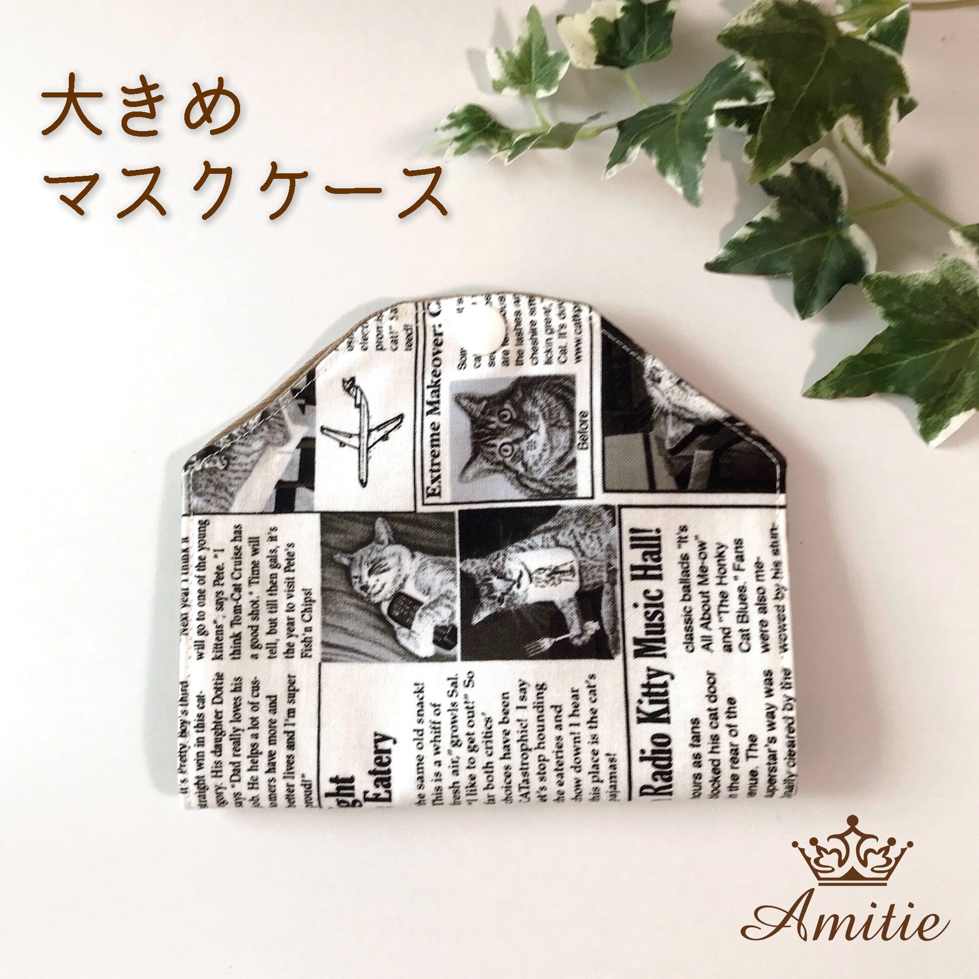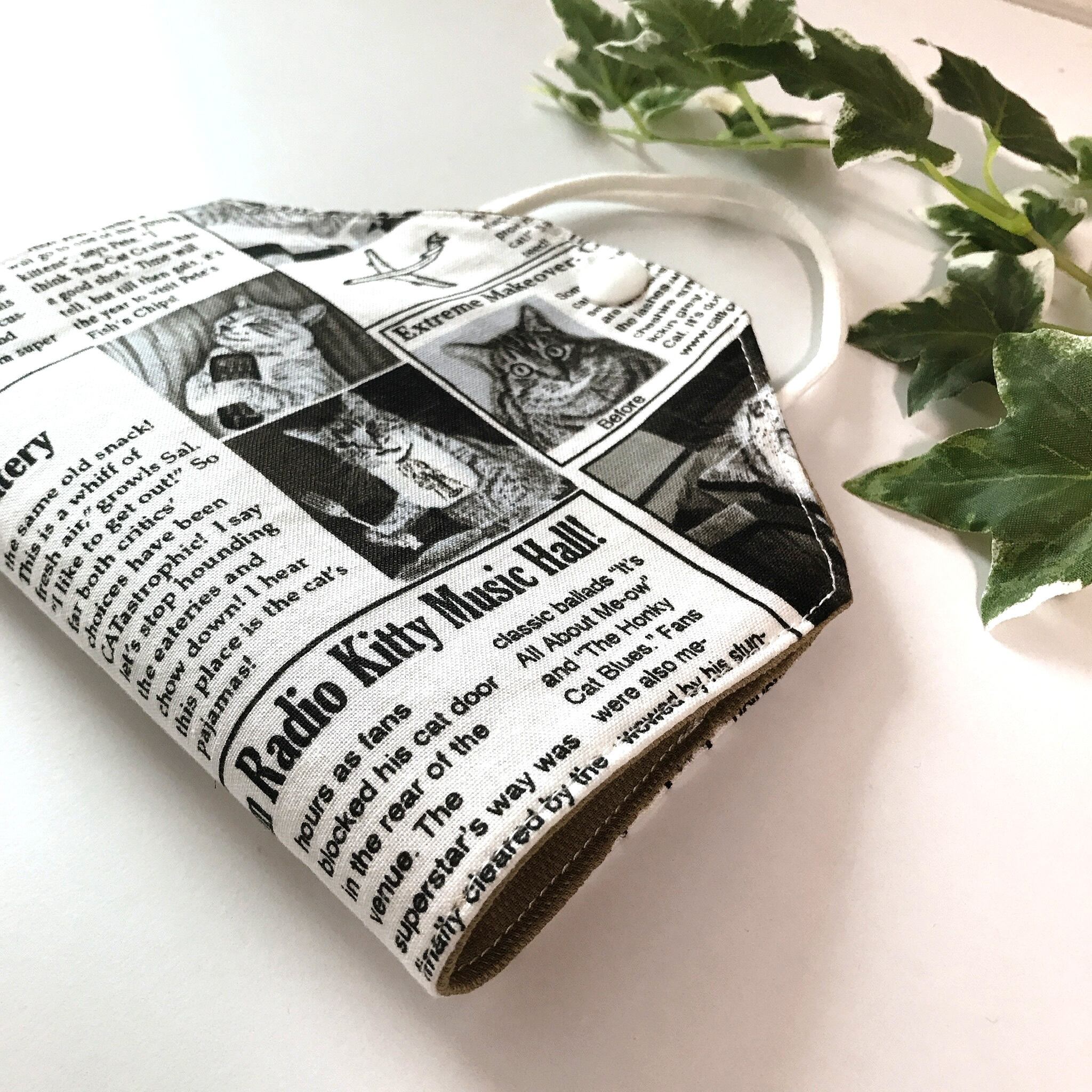 【送料無料】大きめ マスクケース マスクポーチ マスク仮置きケース 猫・英字新聞柄