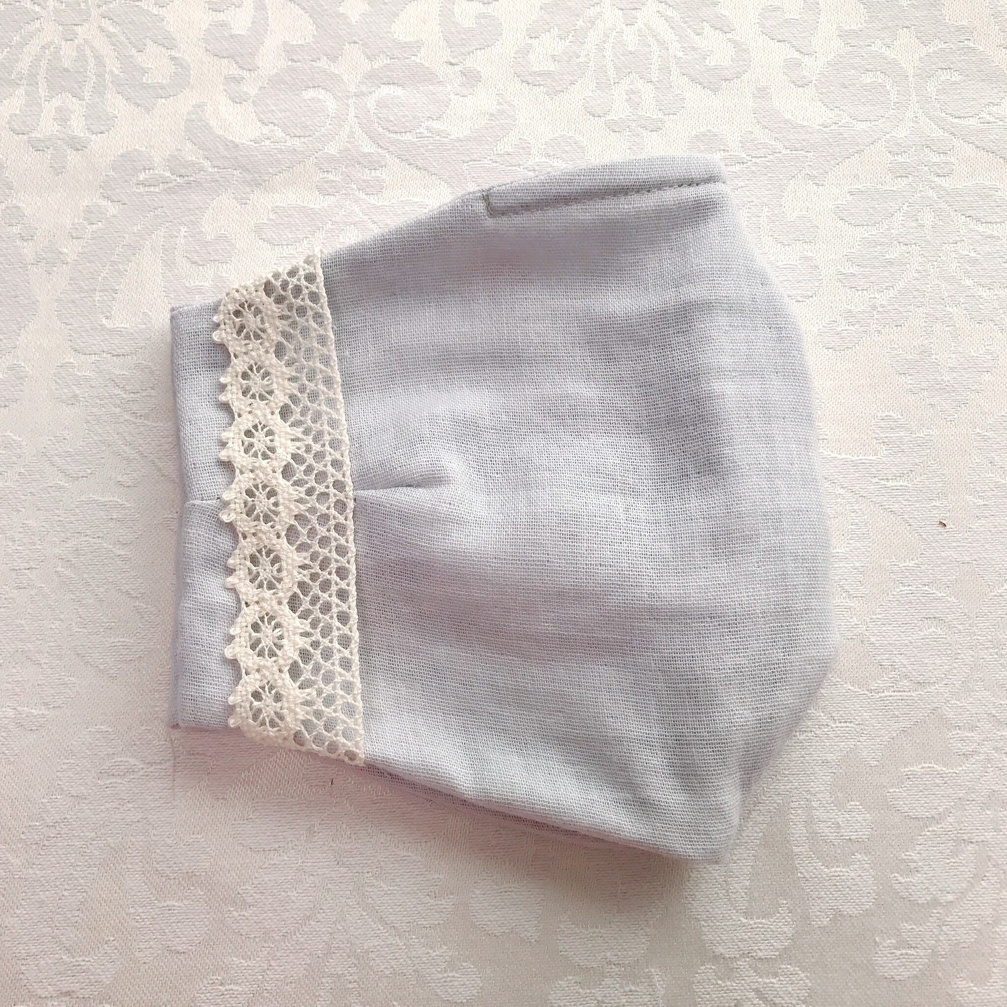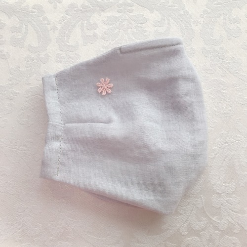 ダーツを入れる事でお口の周りに空間ができ、呼吸がしやすく、シルエットが美しくなるような形に仕上げました。メイクが落ちにくい立体タイプで、一般的な使い捨てマスクよりも大き目で横に長く耳元まですっぽり隠れるサイズです(着用イメージは一番最後の写真を参照くださいませ)。