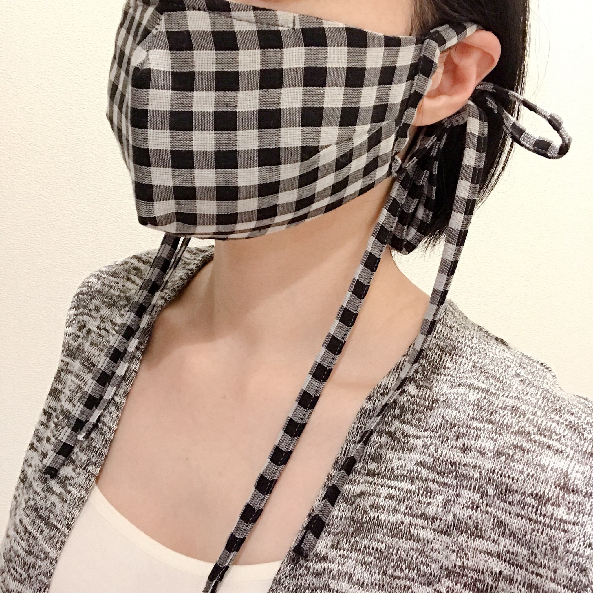 #ロング紐マスク #ロングリボン #リボンマスク #チェック #紗栄子風マスク