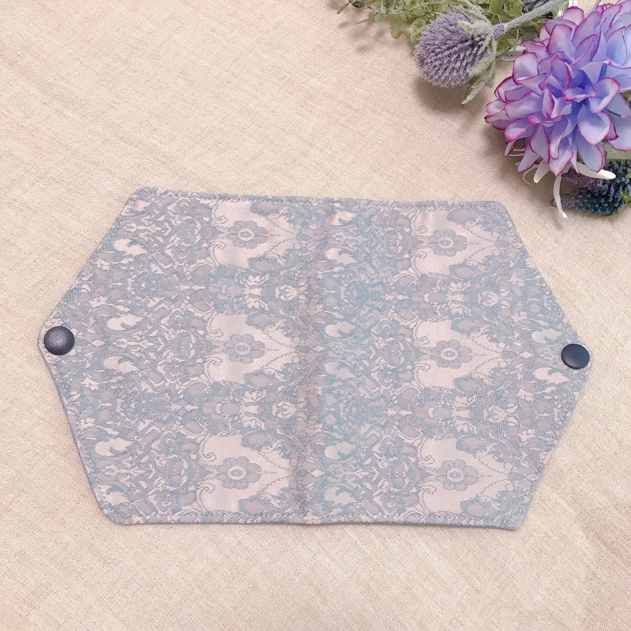 【送料無料】大きめ マスクケース マスクポーチ マスク仮置きケース レース柄 ブルーグレー