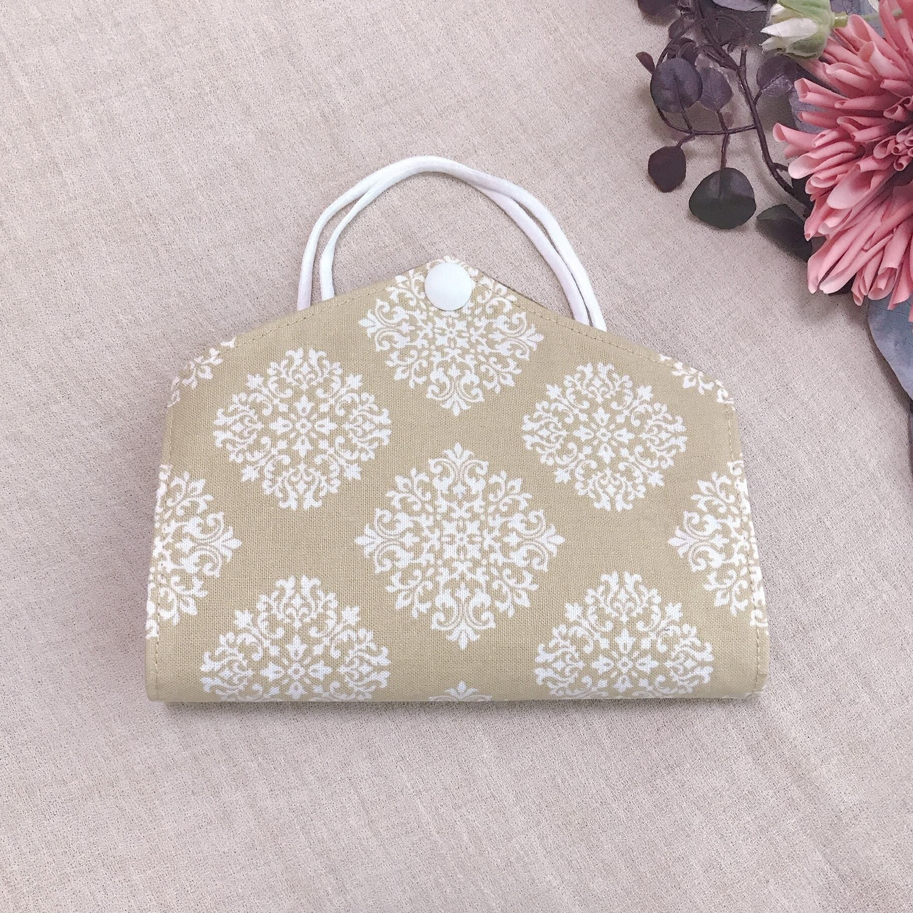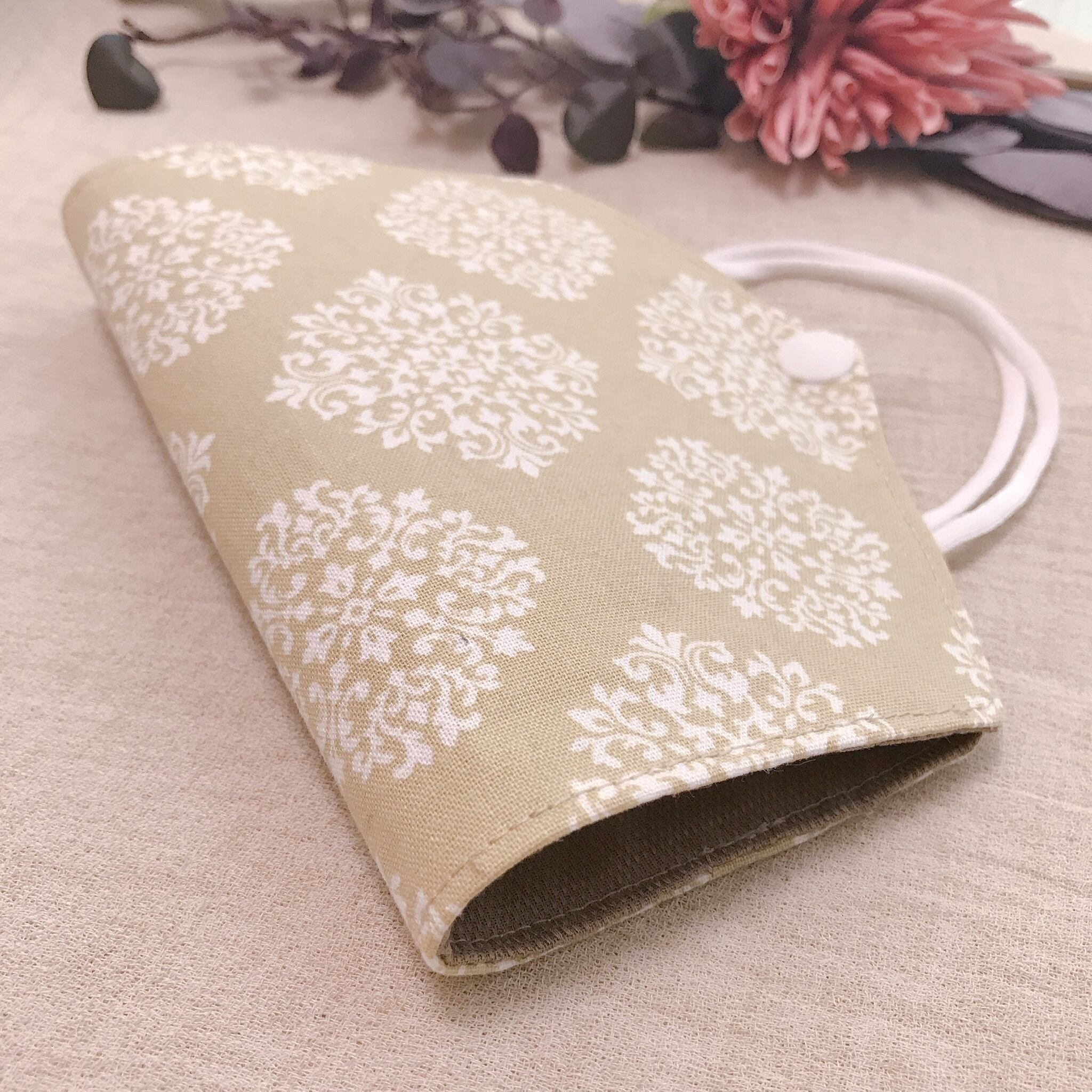 【送料無料】大きめ マスクケース マスクポーチ マスク仮置きケース ダマスク柄 マスタード